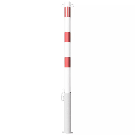 Weiß / rot, mit 2 Ösen: Die auffällige Farbgebung und die zwei Ösen machen den Absperrpfosten besonders benutzerfreundlich und sichtbar.