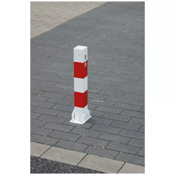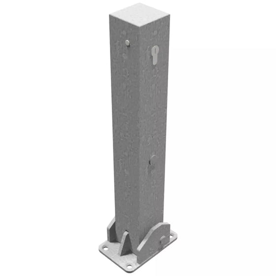 Vierkantrohr 70x70 mm, Überflur 500 mm: Mit diesen Maßen ist der Absperrpfosten robust genug, um den täglichen Anforderungen standzuhalten, und gleichzeitig schlank genug, um nicht zu viel Platz einzunehmen.