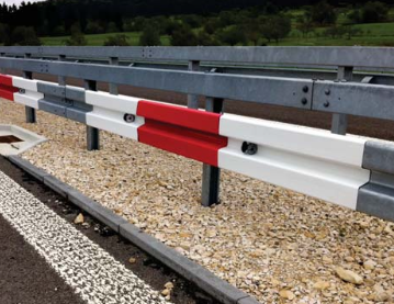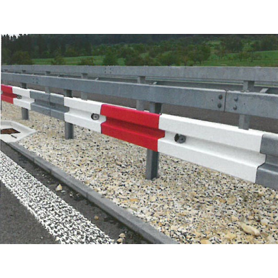 Die Elemente sind aus einem schlagfesten, UV-stabilisierten, witterungs- und tausalzbeständigen Kunststoff. Lieferbar für Stahlschutzplanken Typ A und B.