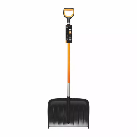 Breiter Kopf: Der Fiskars® X-seriesT Schneeräumer gebogen hat einen breiten Kopf, um große Mengen Schnee von Einfahrten, Gehwegen, Bürgersteigen, Pfaden und mehr zu schieben.