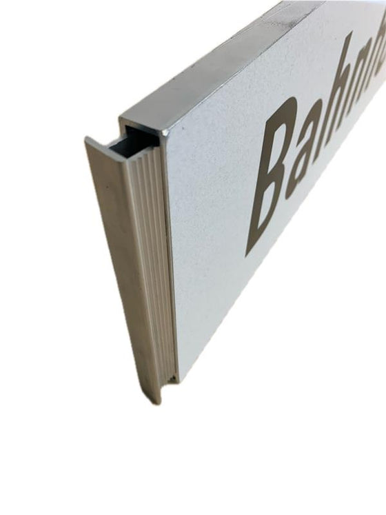 Material und Design: Robustes Aluminium Hohlkastenprofil 15 x 2 mm mit Nut zum Einschieben von Hausnummern oder Legendenschildern. Inklusive einer Endkappe.