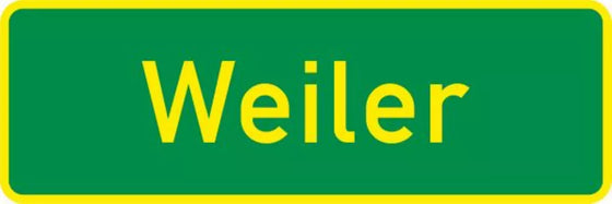 Verkehrszeichen VZ385 Ortshinweistafel (war von 1971 bis 1992 schon einmal Zeichen 385), bisher Zeichen 385-50