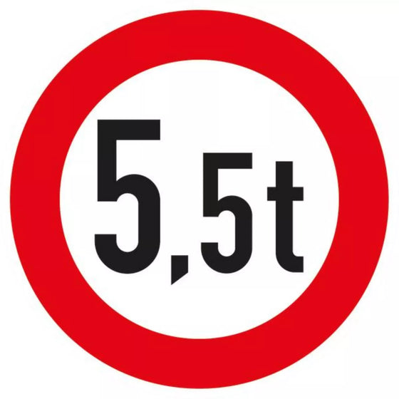 Verkehrszeichen VZ262 Verbot für Fahrzeuge über angegebene tatsächliche Masse - RD 600 2 mm RA2
