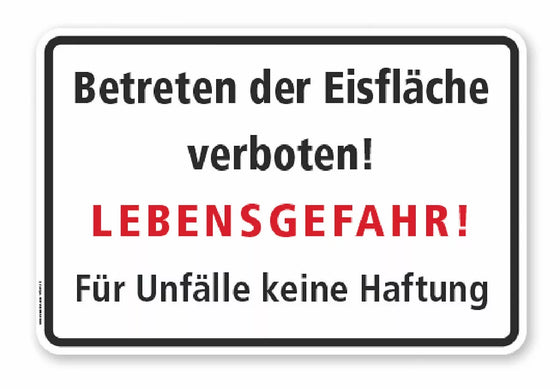 Hinweisschild WH-E-07 Betreten der Eisfläche verboten! Lebensgefahr! Für Unfälle keine Haftung, RA1