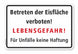 Klare Warnung vor den Gefahren auf Eisflächen: Das Verkehrszeichen WH-E-07 mit der Aufschrift Betreten der Eisfläche verboten! Lebensgefahr! Für Unfälle keine Haftung weist deutlich auf die lebensbedrohlichen Gefahren hin, die das Betreten von gefrorenen und unsicheren Eisflächen mit sich bringt. Diese klare Botschaft hilft, Menschen vor riskantem Verhalten zu bewahren und ihre Sicherheit zu gewährleisten.